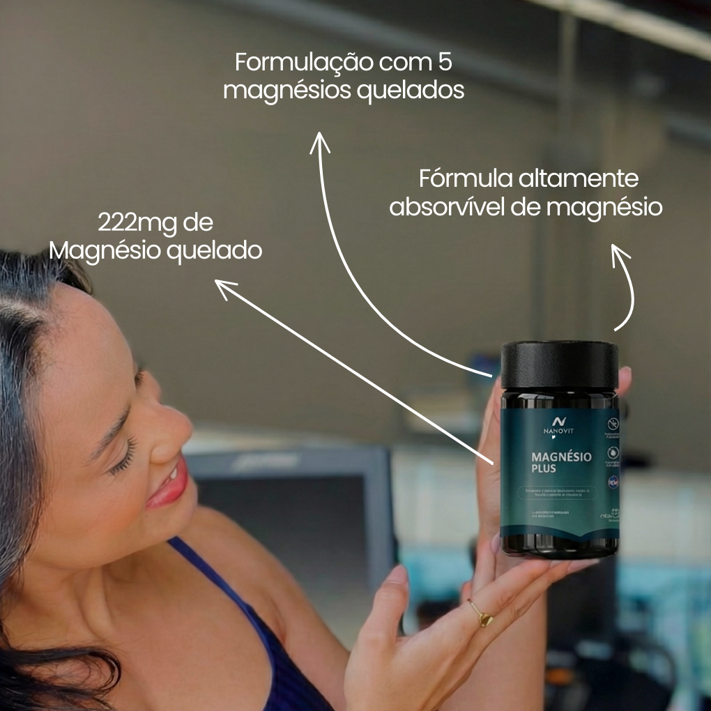 O Magnésio e um dos principais minerais, participa de mais de 300 processos de sínteses em nosso organismo. O NANOVIT MAGNÉSIO tem uma formulação equilibrada com magnésio quelato, que é mais facilmente absorvido pelo organismo, tornando os efeitos mais rápidos e duradouros. O NANOVIT MAGNÉSIO tem diversas funções no organismo: Tem ação fundamental na formação e fortalecimento de ossos e dentes em homens e mulheres através da potencialização do hormônio D, mantem músculos fortes e saudáveis, aumenta o tônus muscular “capacidade de arranque, força” e contribuí e na regeneração de tecido evitando dores e inflamações, atua na regulação do sistema nervos melhorando a qualidade do sono, amenizando os sintomas da ansiedade e da depressão, ajuda na produção de hemoglobina aumentando e regulando a energia do corpo, mantem os níveis de açúcar controlado, forte aliado na prevenção da osteoporose, melhora a digestão, aliviando os sintomas da constipação evitando assim que a barriga fique inchada.